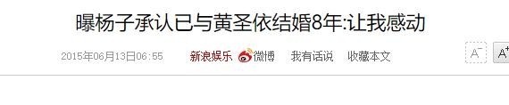 直到结婚八年后,杨子才首次对外承认与黄圣依的婚姻关系。